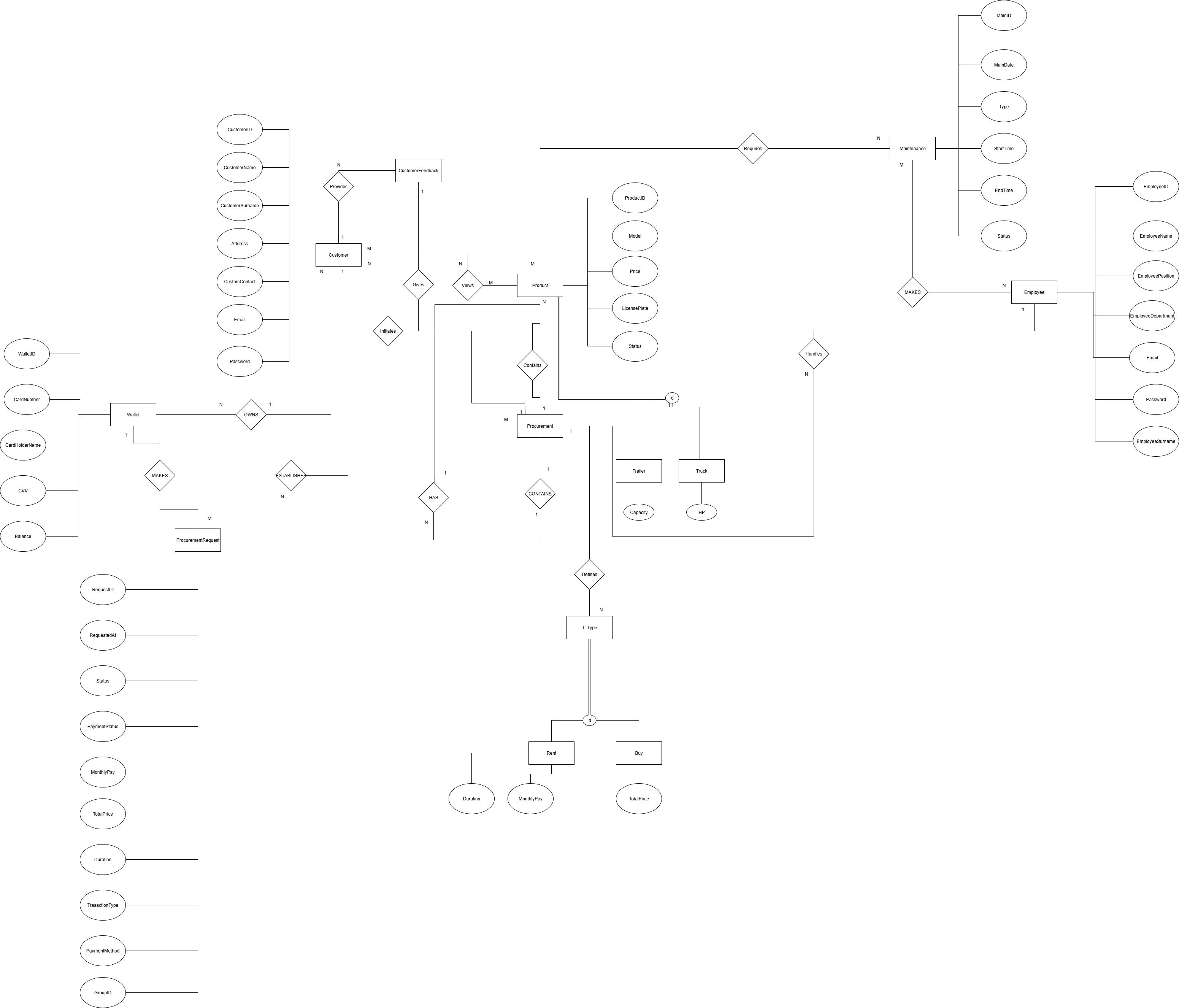 5) Contains (Procurement : Product) (1:N) Еден процес на набавка може да содржи повеќе производи, додека секој поединечен запис за производ во таа набавка е поврзан со таа една набавка.
