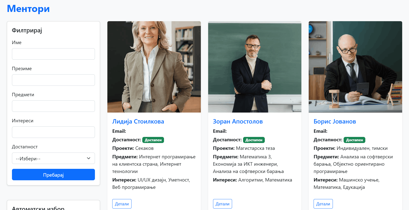 | 8 | Преглед на ментор | Најавен корисник |