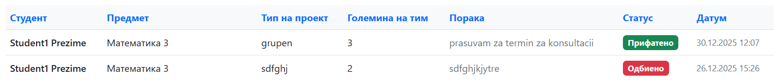 Прифати или одби мислење на студент