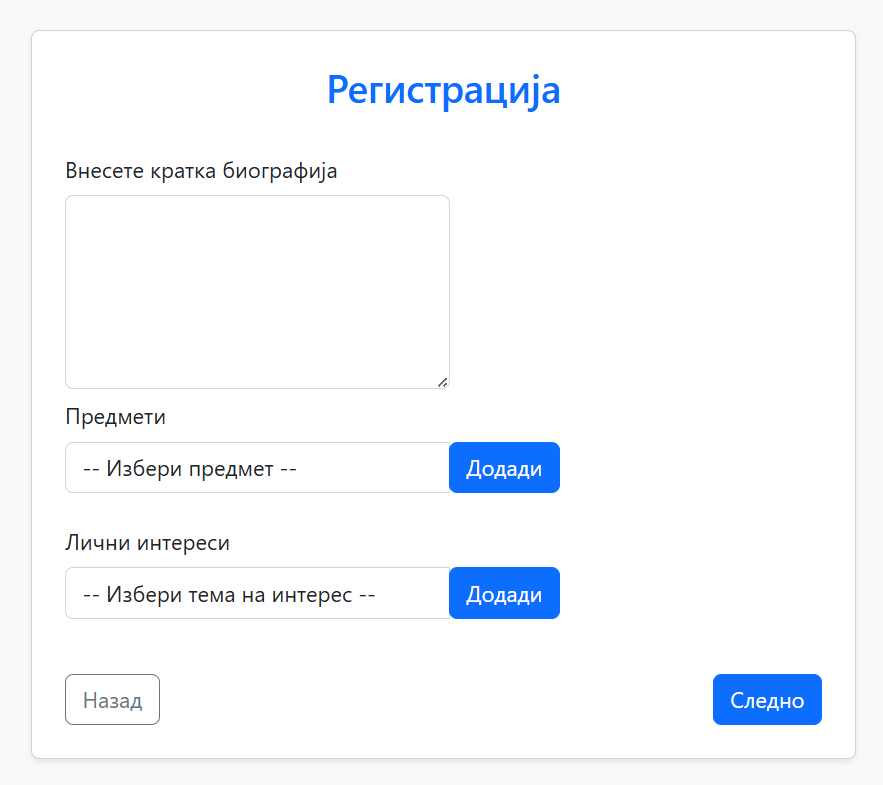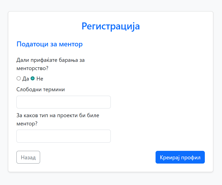 Креирање на профил (ментор)