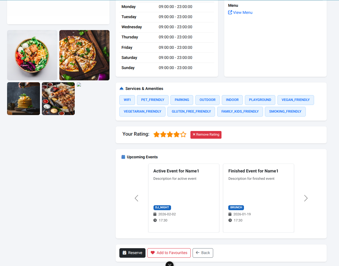 Секој најавен корисник кој се наоѓа во деталниот преглед на било кој локал може да остави оцена за истиот или да ја промени и избрише веќе оставената оцена.