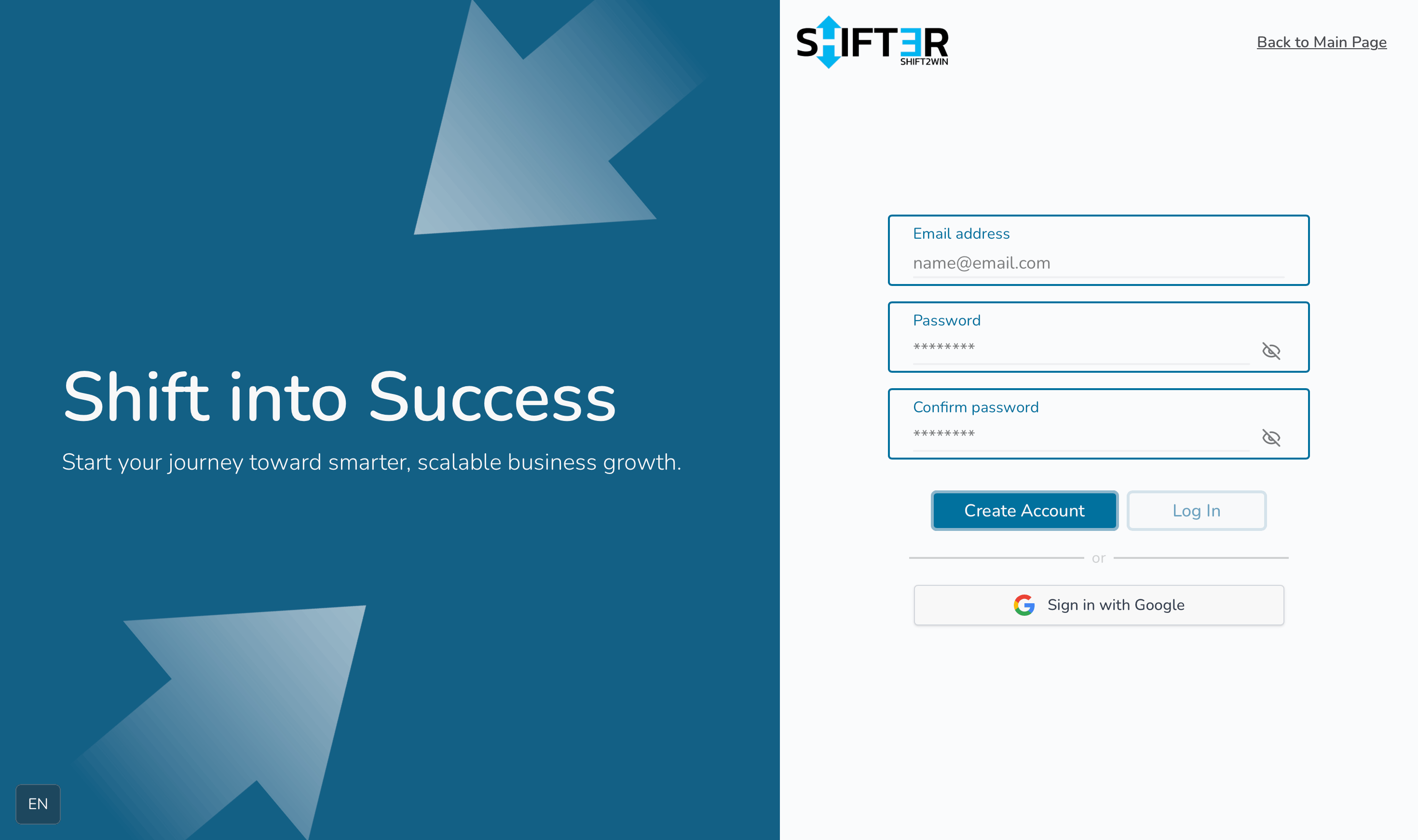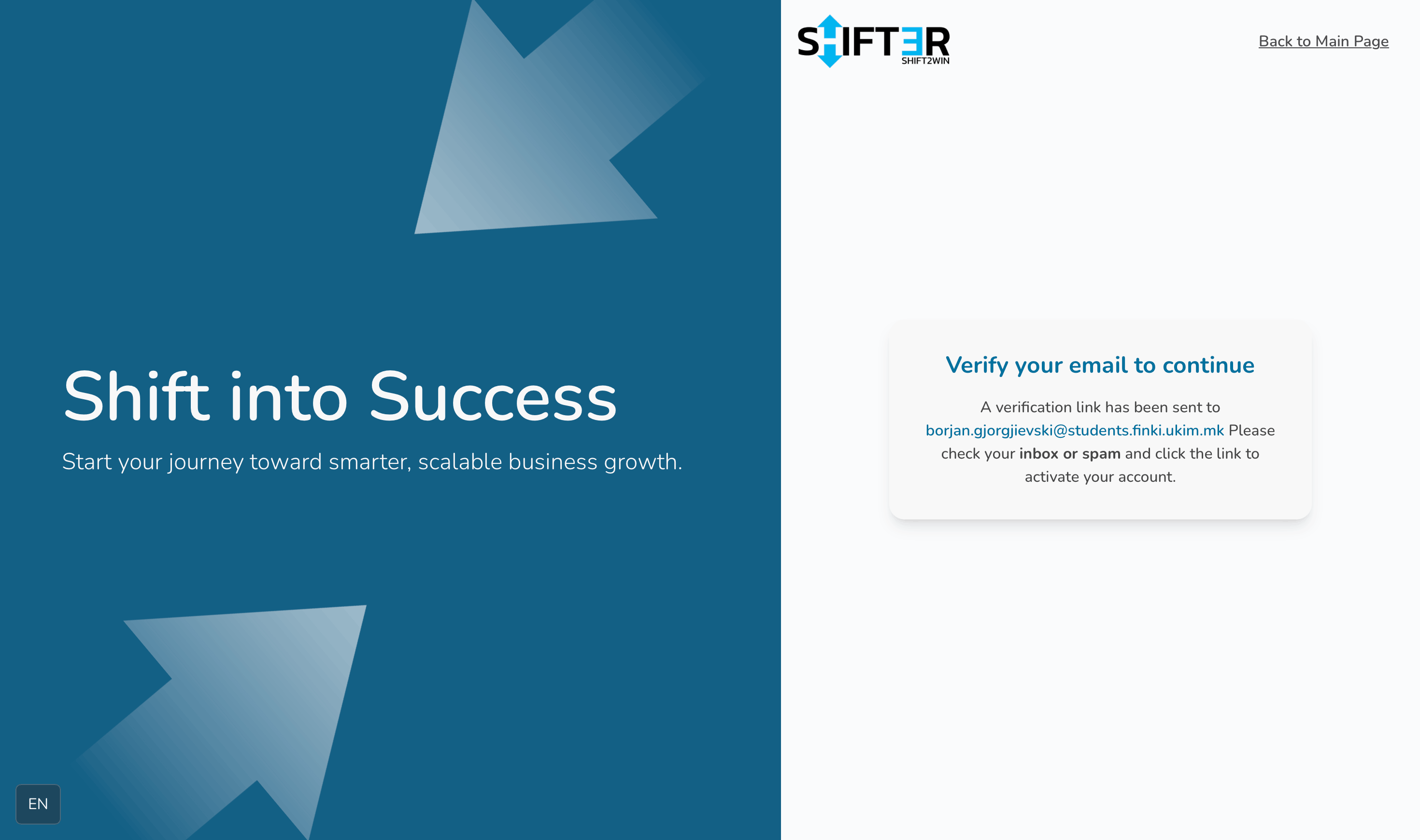 - На корисникот му се прикажува почетната страна на Shifter, каде тој е веќе логиран