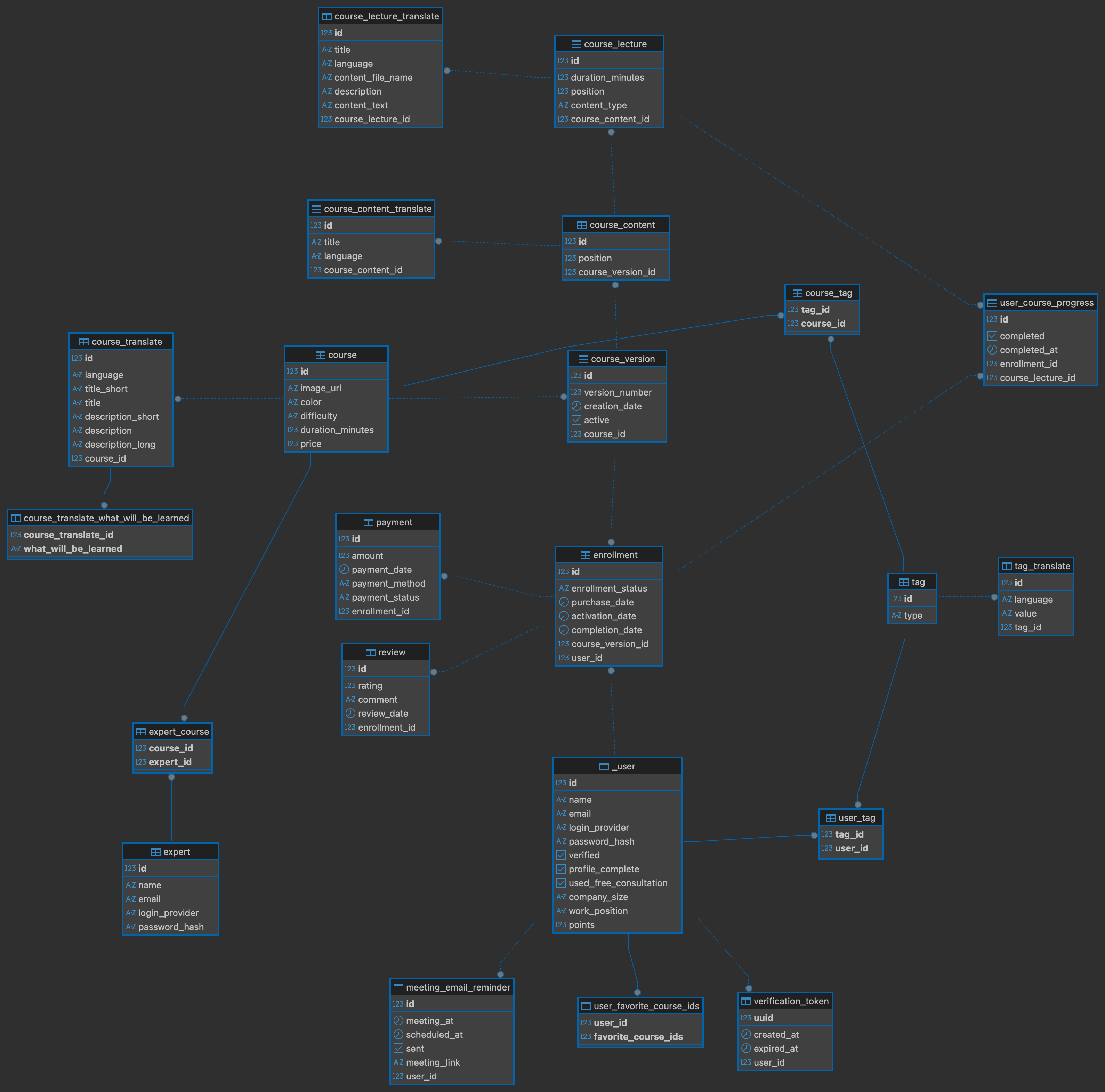 - course_lecture_translate (id, language, content_file_name, title, description, content_text, course_lecture_id*(COURSE LECTURE))