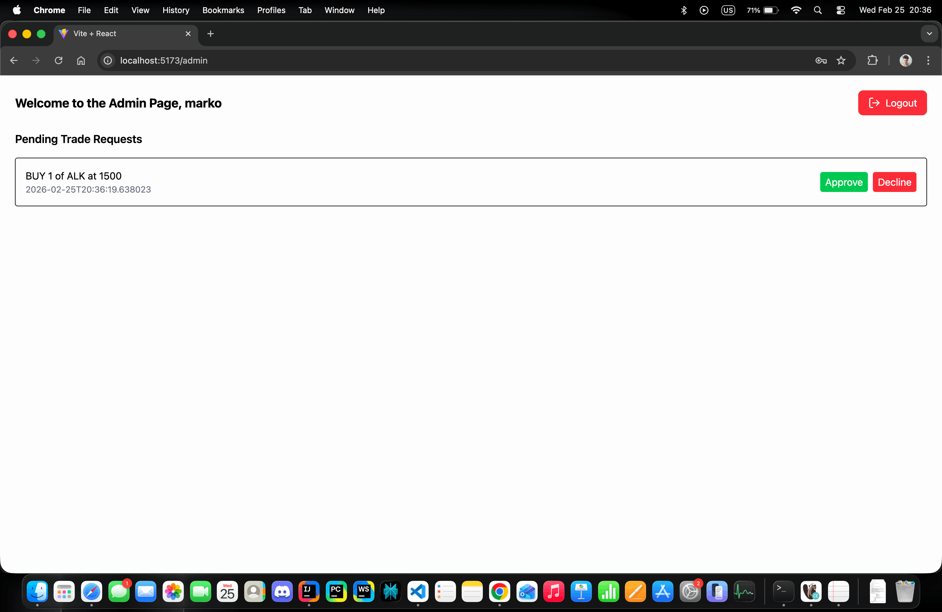 - Брокер / Admin одобрува trade request.
