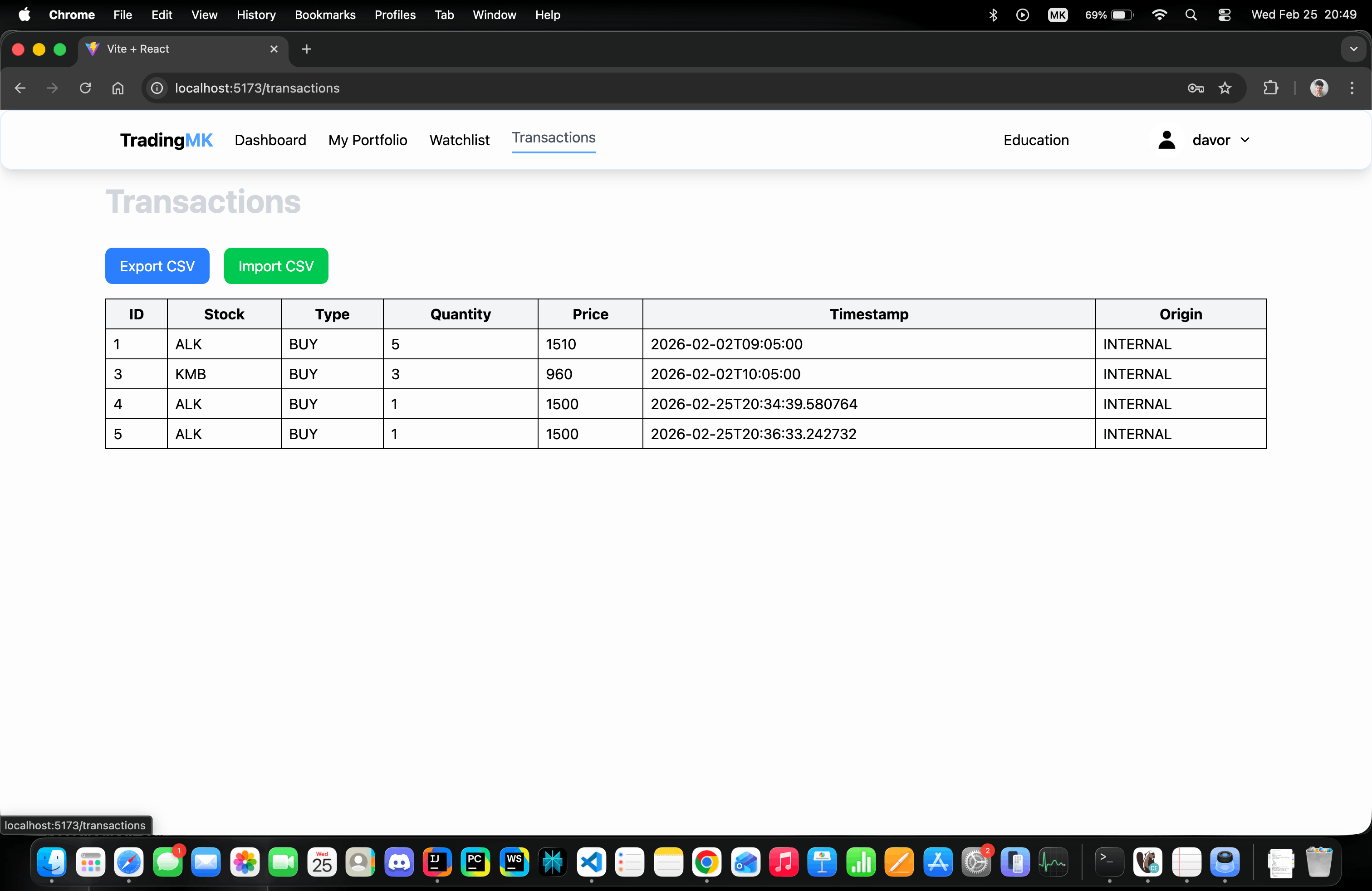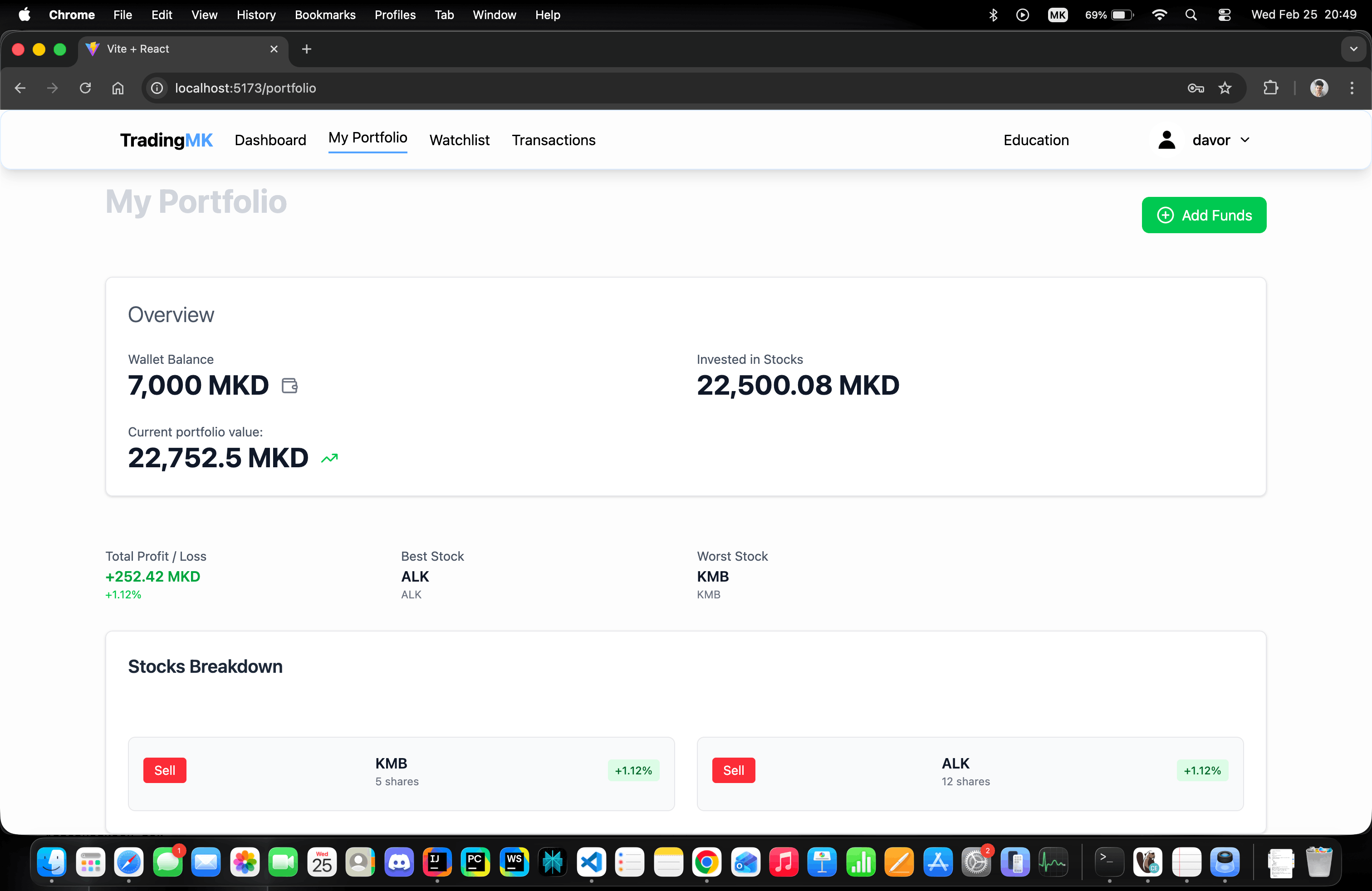 - Корисникот се најавува и отвара портфолио