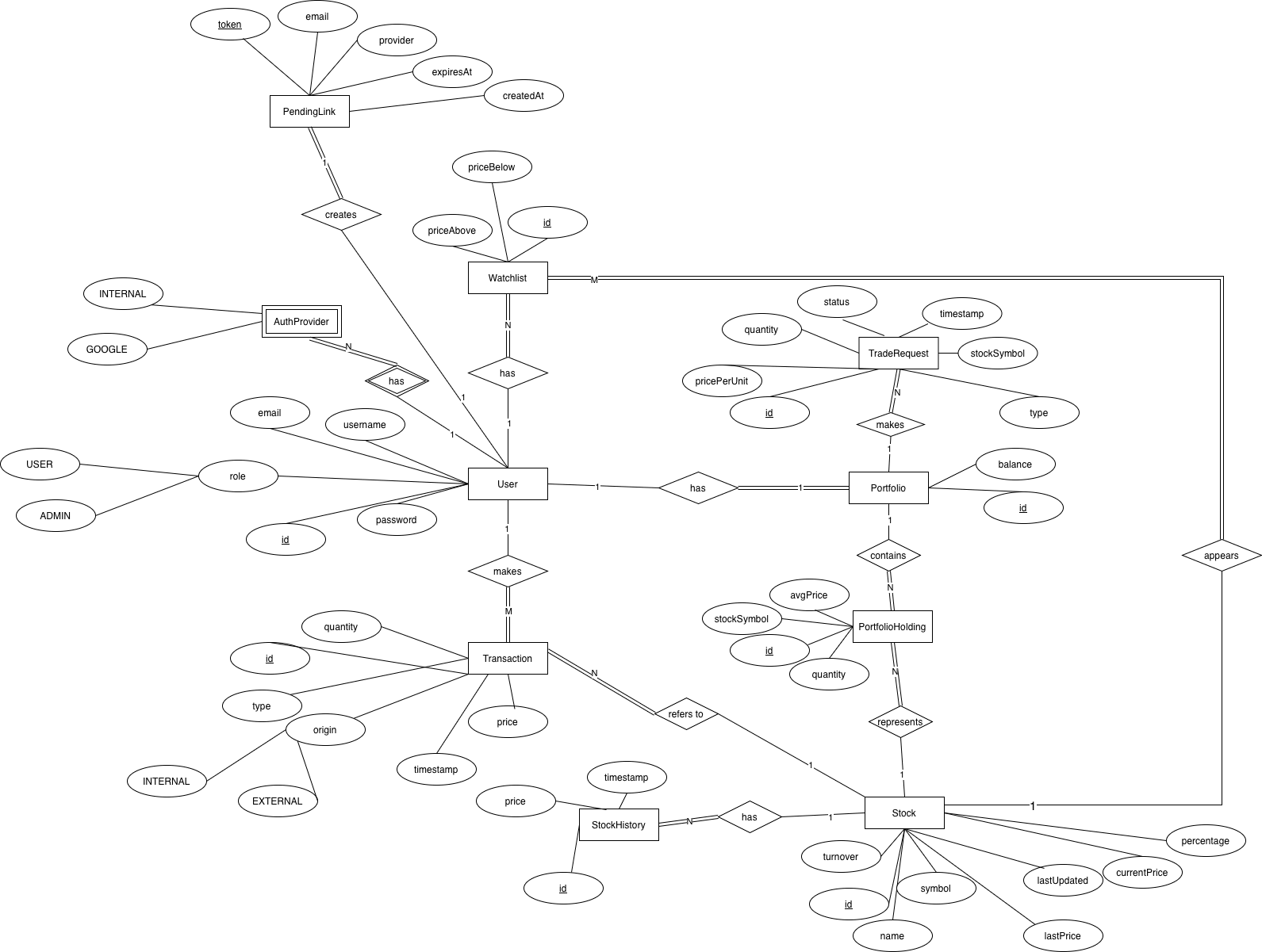 has (Stock ↔ StockHistory, 1:N) Една акција може да има повеќе историски записи за цена.