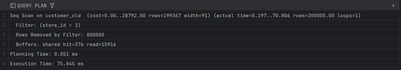 EXPLAIN ANALYSE SELECT * FROM customer_old WHERE store_id = 2;