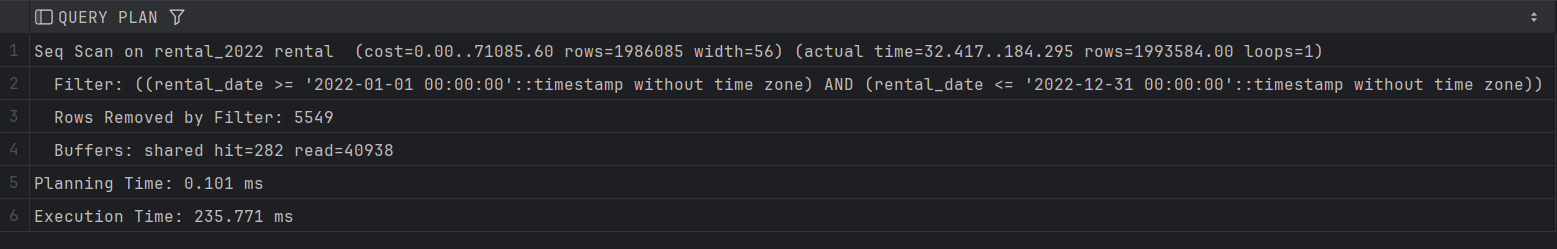 EXPLAIN ANALYSE SELECT * FROM rental_old WHERE rental_date >= '2022-01-01' AND rental_date <= '2022-12-31';