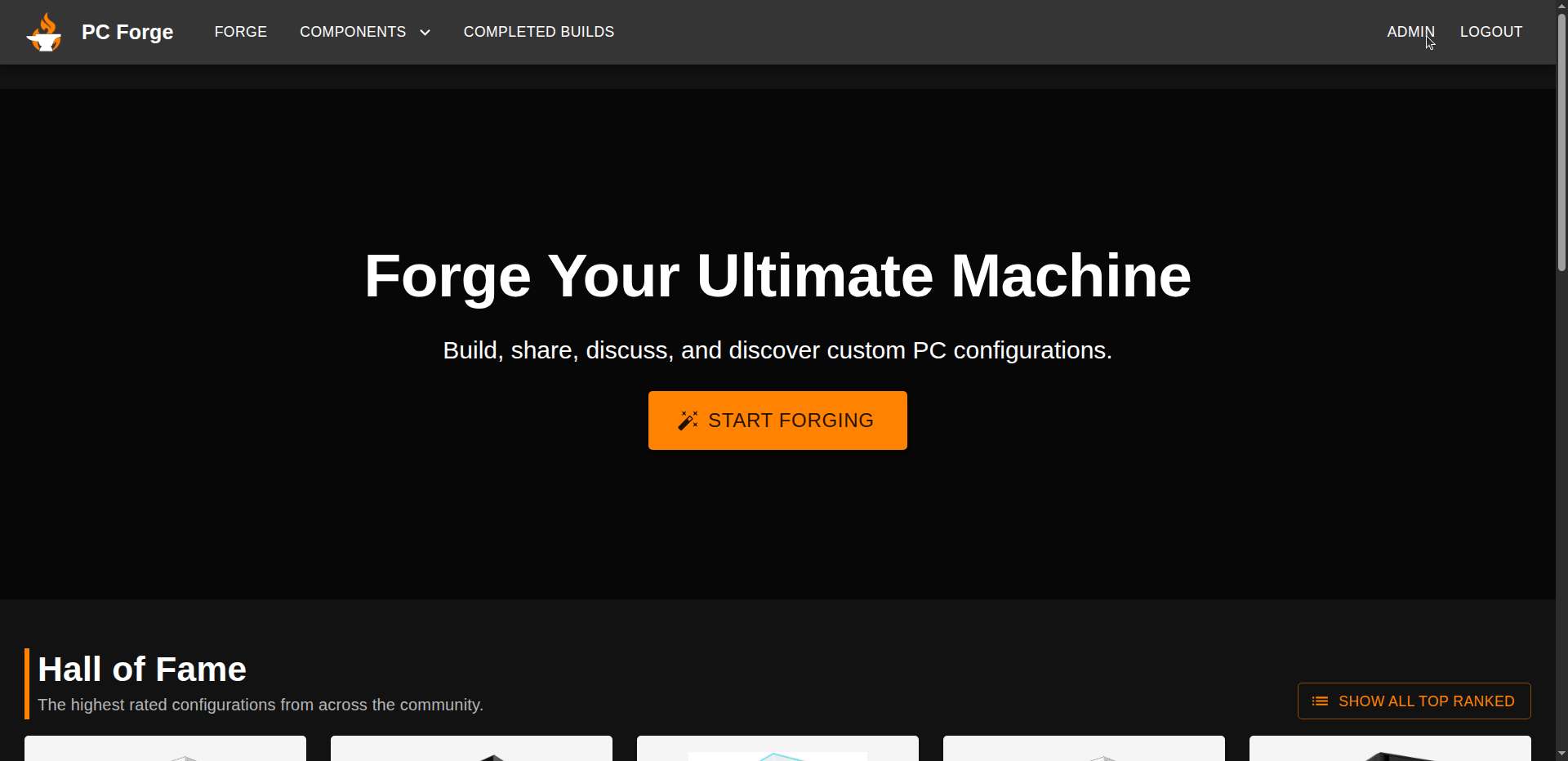 - A dashboard with their information, favorited builds and their own builds is displayed.