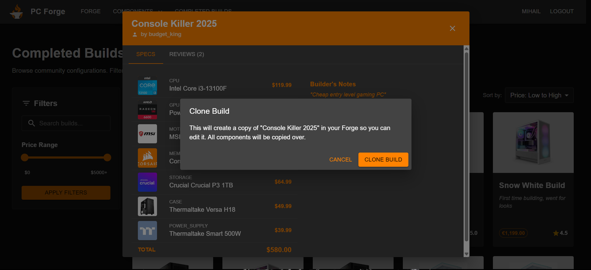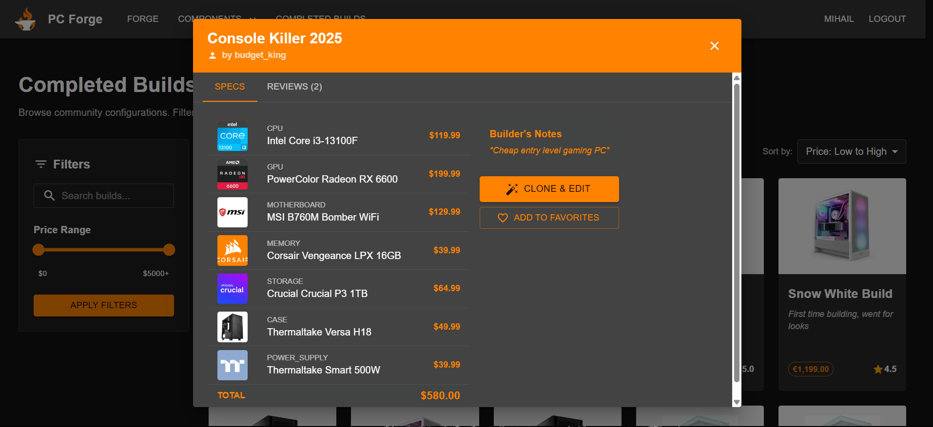 - The user clicks on the "CLONE & EDIT" button and is redirected to the forge page
