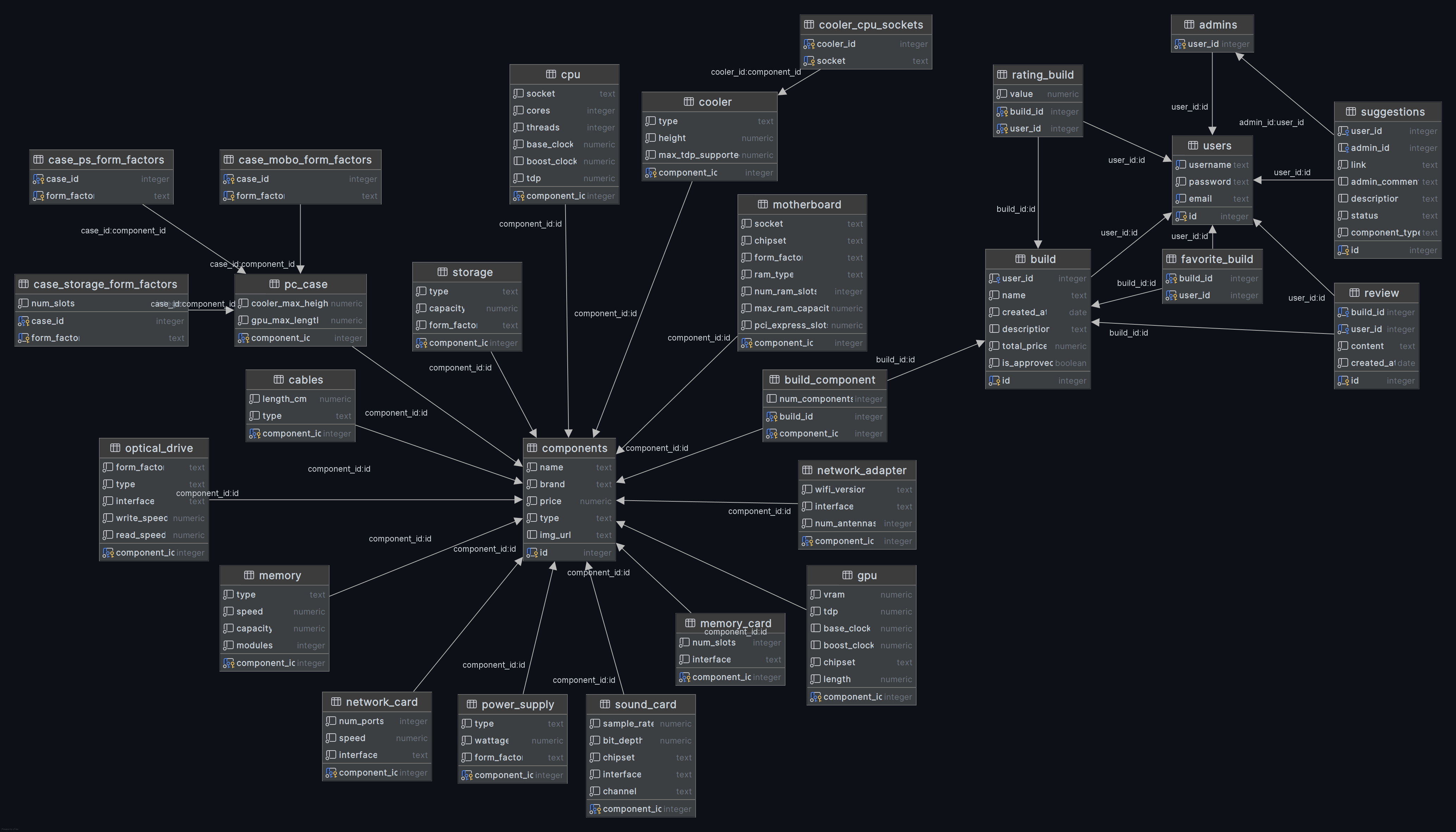 - build (id, user_id* (Users), name, created_at, description, total_price, is_approved)