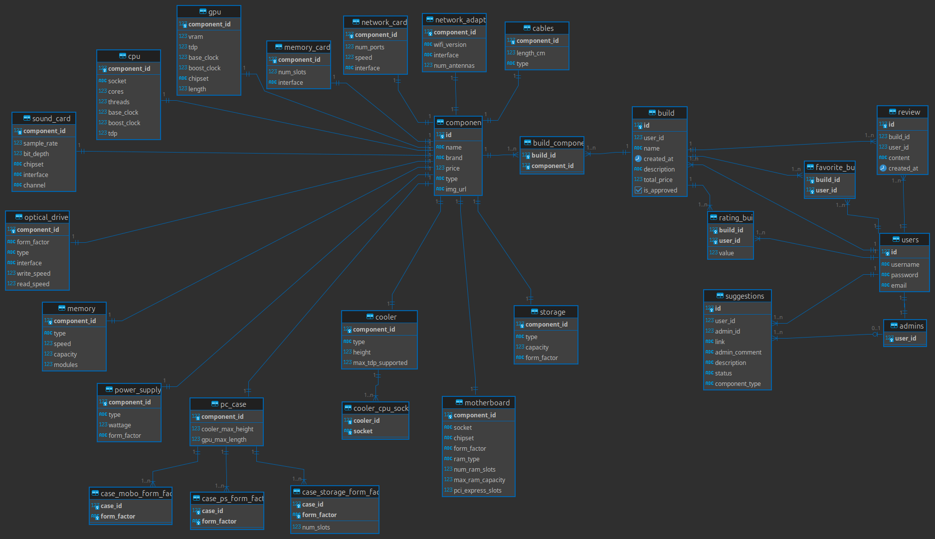 - Components (id, name, brand, price, type, img_url)