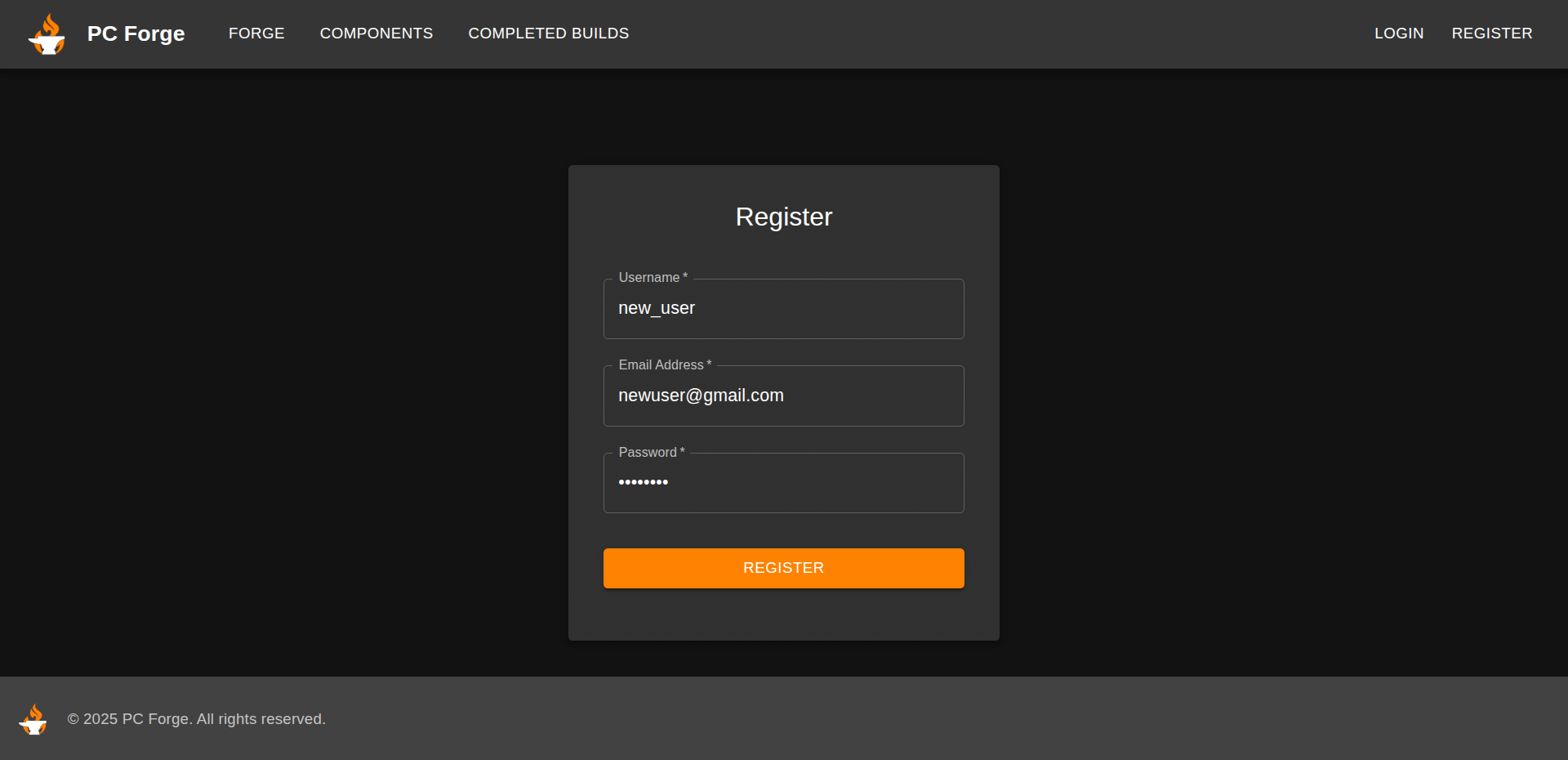 Step 1. Guest clicks on REGISTER button and fills out the registration form with username, email and password.