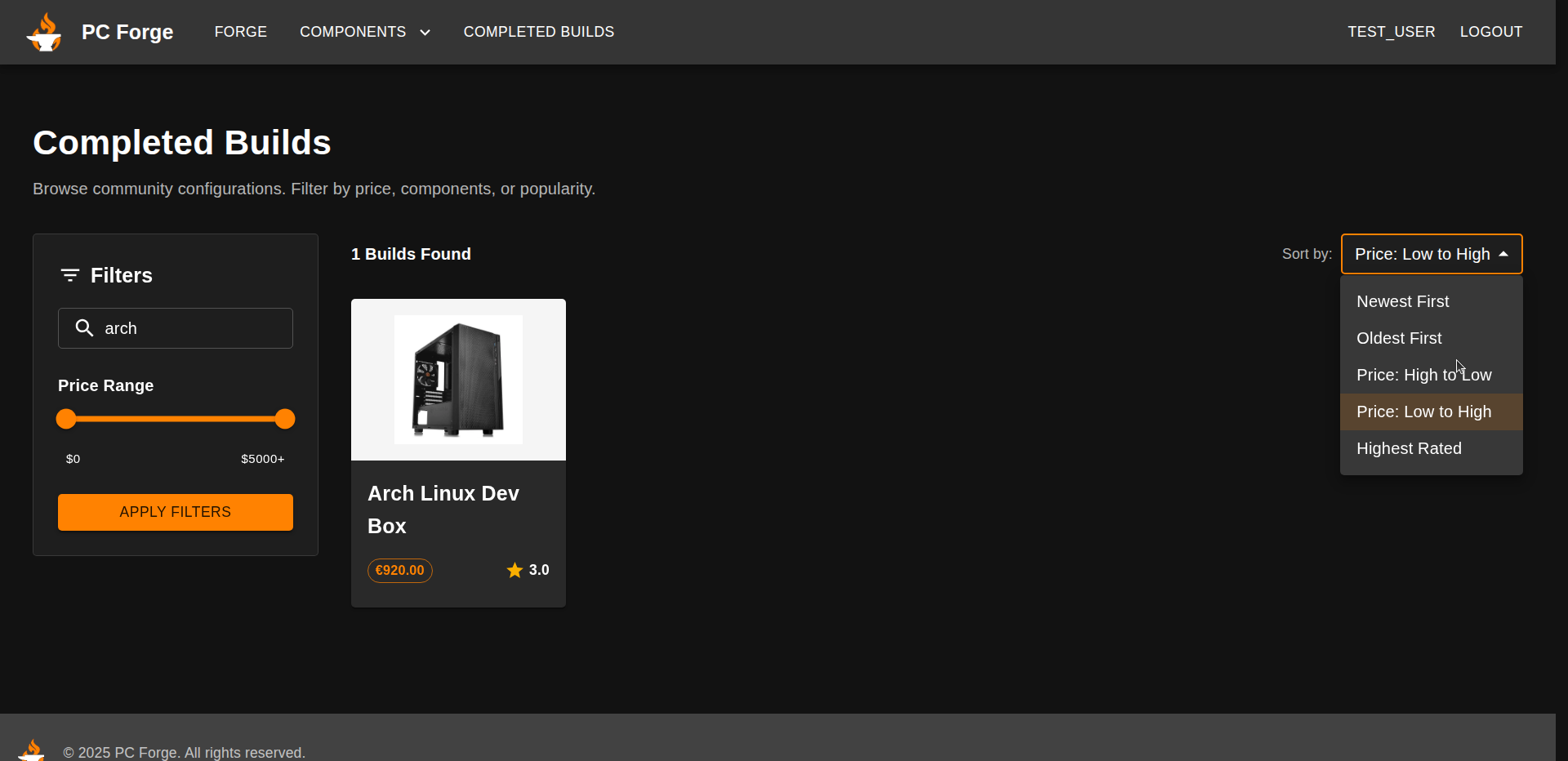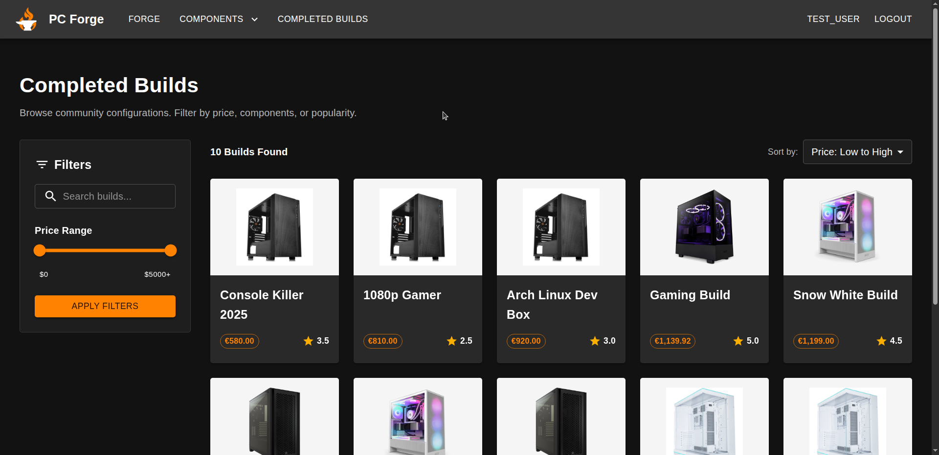 - The user clicks on the "COMPLETED BUILDS" button