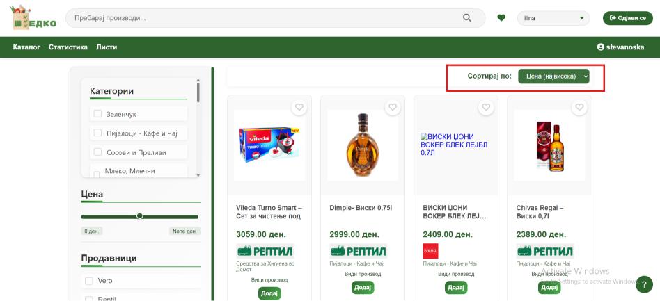 4 | Филтрирање на продукти | Пребарување според име, категорија, сличност и други критериуми |