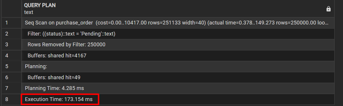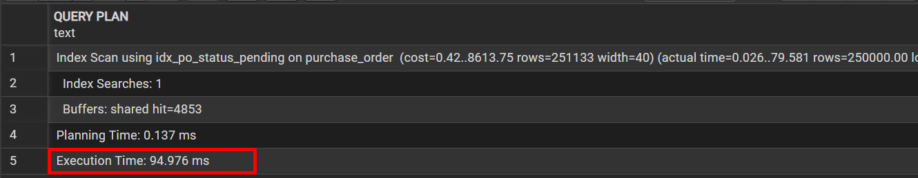 " -> Index Scan using warehouse_pkey on warehouse w (cost=0.14..0.16 rows=1 width=222) (actual time=0.014..0.014 rows=1.00 loops=3)"