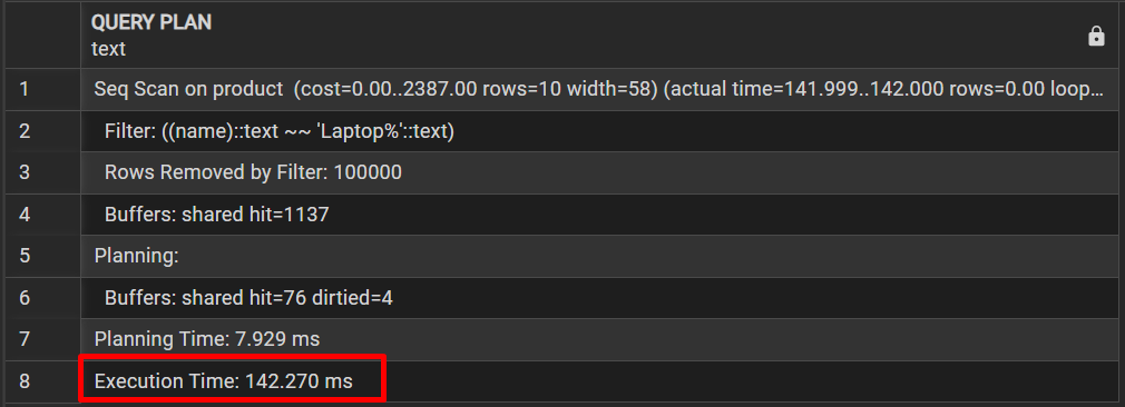 " -> Seq Scan on product p (cost=0.00..117.00 rows=5000 width=12) (actual time=0.463..1.723 rows=5000.00 loops=2)"
