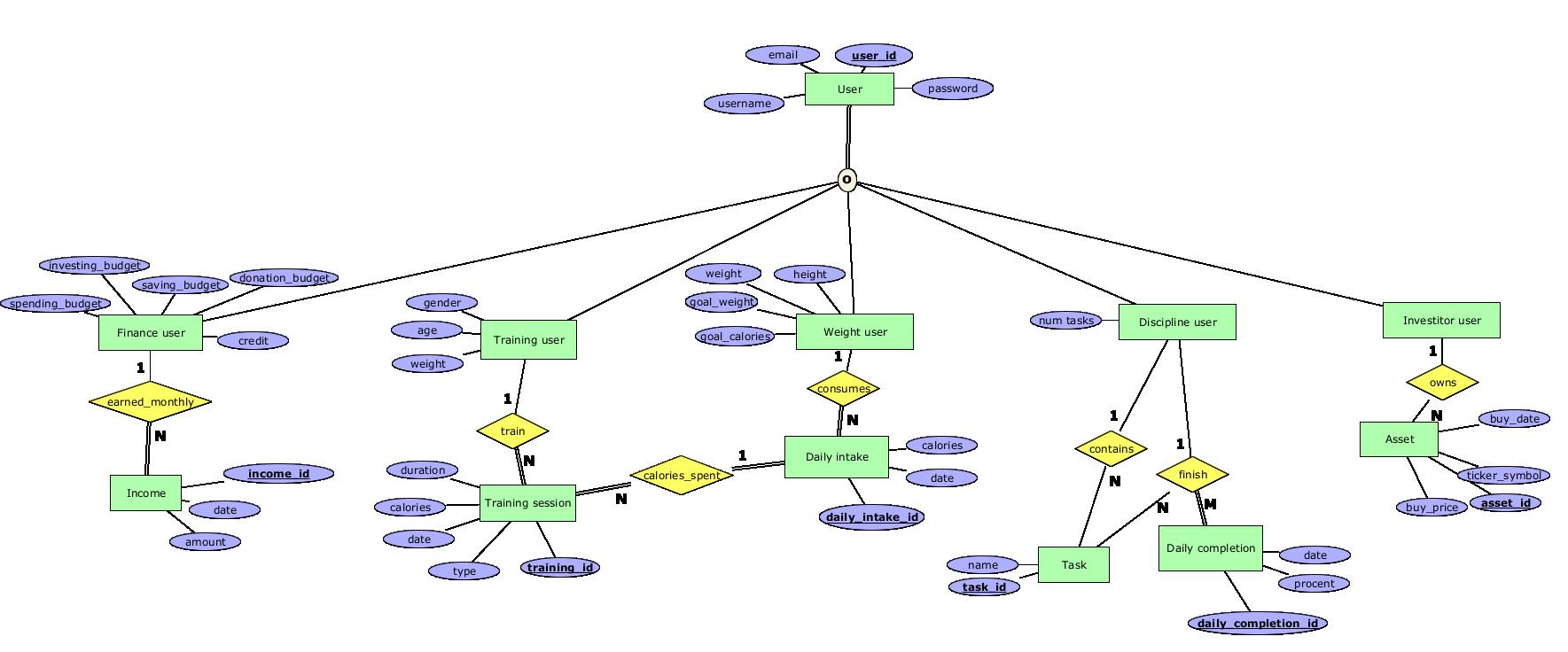 - Discipline user – ентитет кој чува податоци за дисциплински навики на корисникот