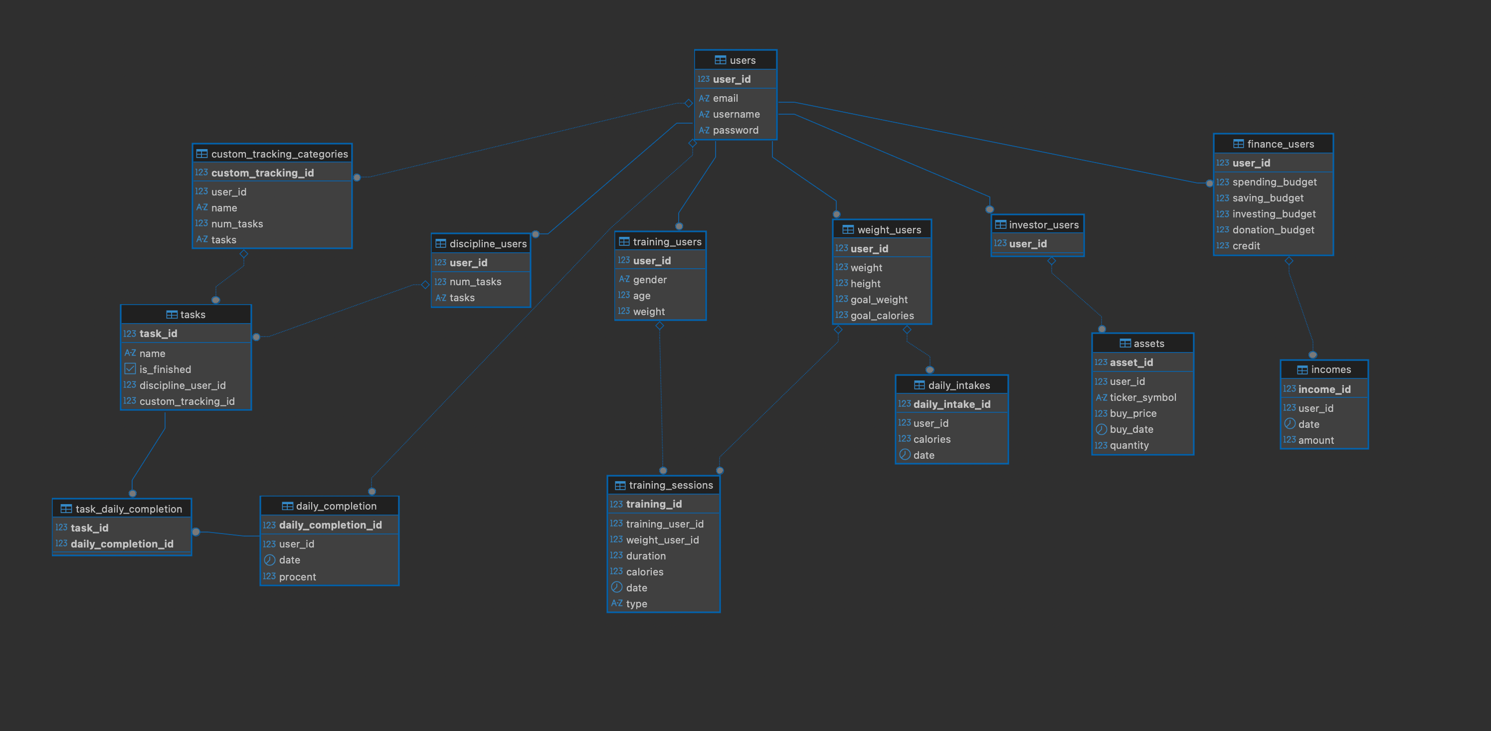 - TaskDailyCompletion (task_id*(Task), daily_completion_id*(DailyCompletion))