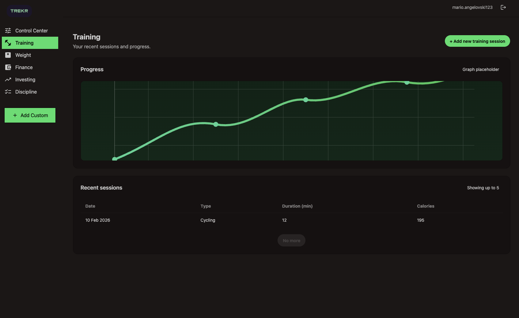 Доколку сеуште не следи тренинзи се појавува копче "Start Training Tracking"