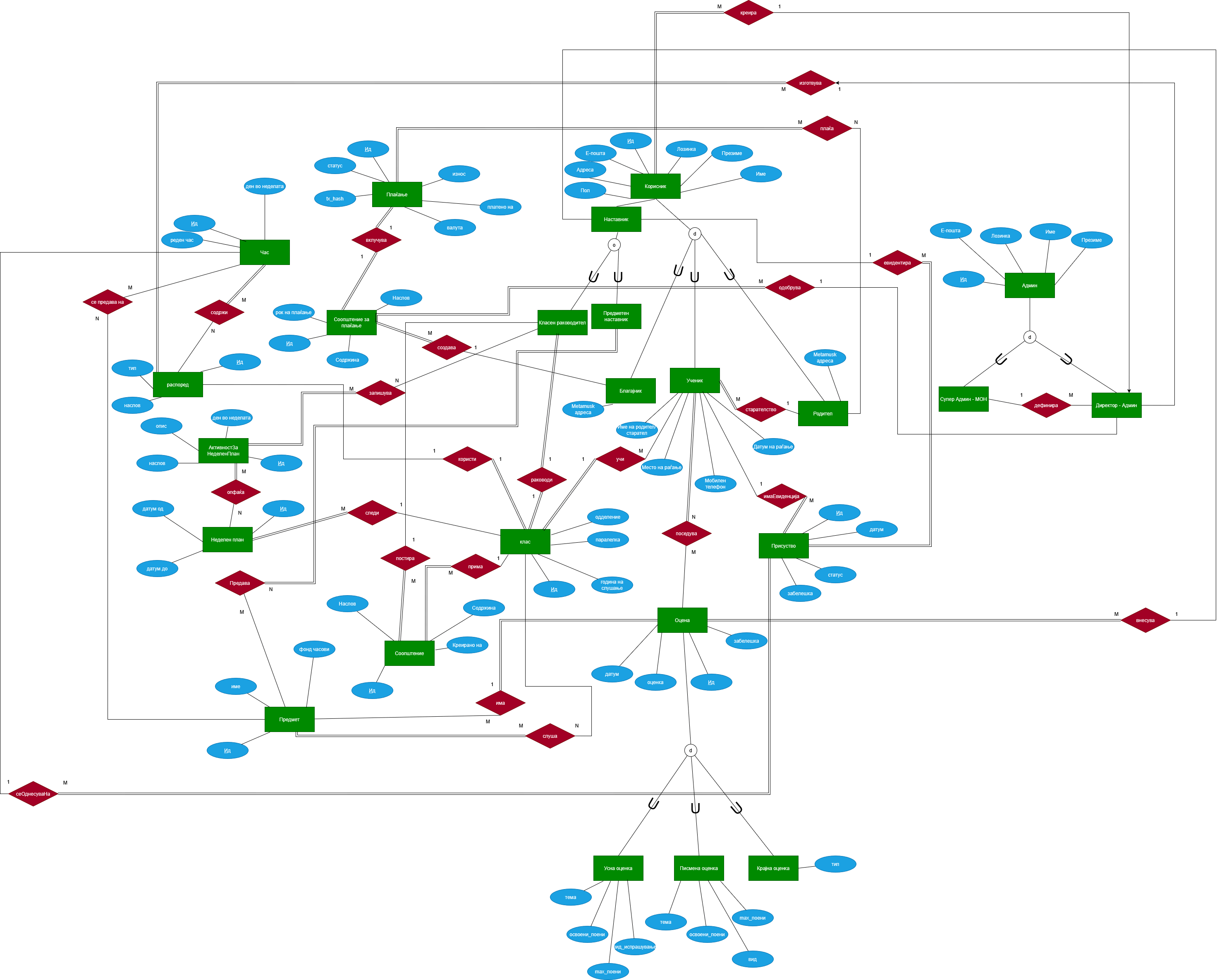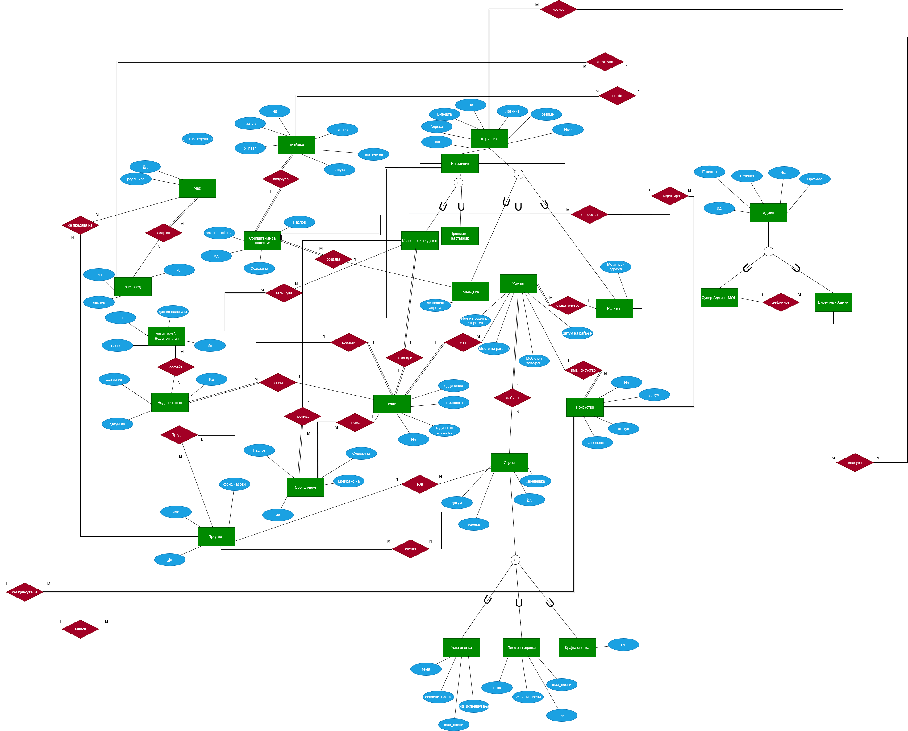 - Креира (Директор_Админ ↔ Корисник) 1:М