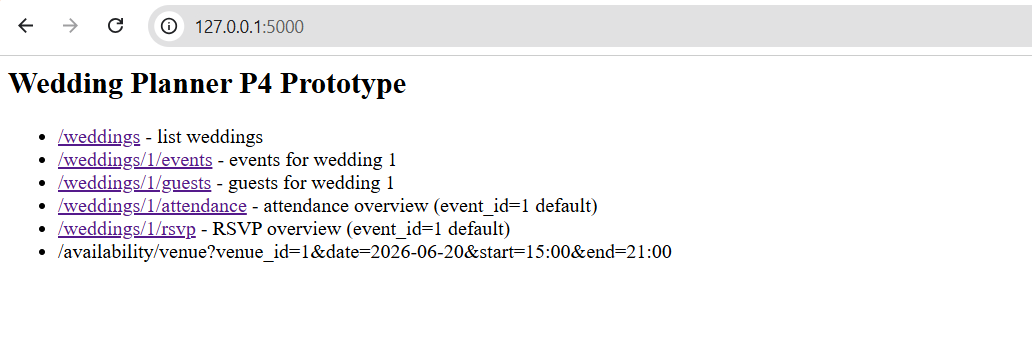 Screenshots showing the prototype running locally and the available endpoints.