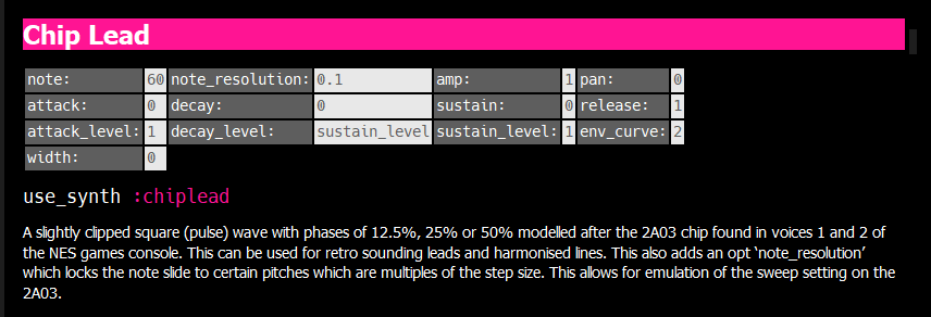 За lead звуците, ќе ги симулираме двата Pulse Wave канали т.е Sonic Pi пак има Pulse Wave моделиран по 2A03.