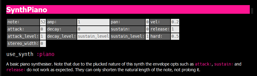 За тоа првично ќе го користиме Piano synth во Sonic Pi.