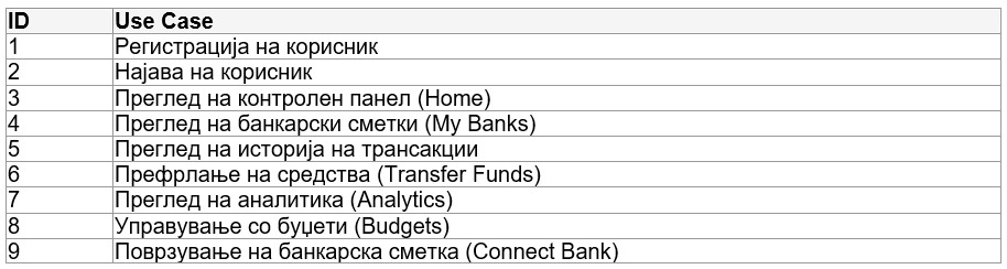 Заклучно со оваа фаза се имплементирани сите предвидени кориснички сценарија, односно: