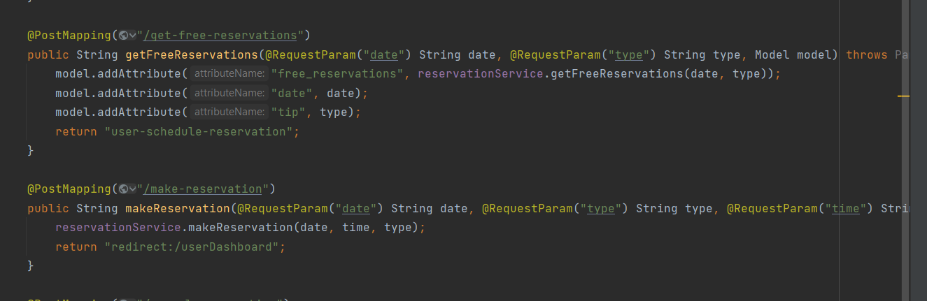 Најпрво се повикува методот 'getFreeReservations' од контролерот за резервации, при што тој прима параметри за датум и тип на услуга. Системот преку методот 'getFreeReservations' кој се наоѓа во сервисниот слој(service layer) ги наоѓа слободните термини за соодвениот датум и тип на услуга и му ги враќа назад на клиентот преку моделот. Откако клиентот ќе избере соодветен термин и ја направи резервацијата, се повикува методот 'make-reservation' од контролерот за резервации, при што тука се примаат сите параметри за резервацијата. Системот преку методот 'makeReservation' кој се наоѓа во сервисниот слој(service layer), прави објект од 'Reservation Entity' и го зачувува во базата. Во самиот објект, ги имаме сите информации за резервацијата(датум,тип,време,од кој корисник е направена резервацијата итн.)