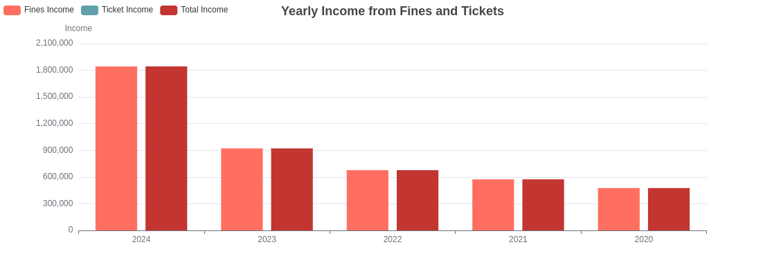 Total income (from ticket sales and fines)