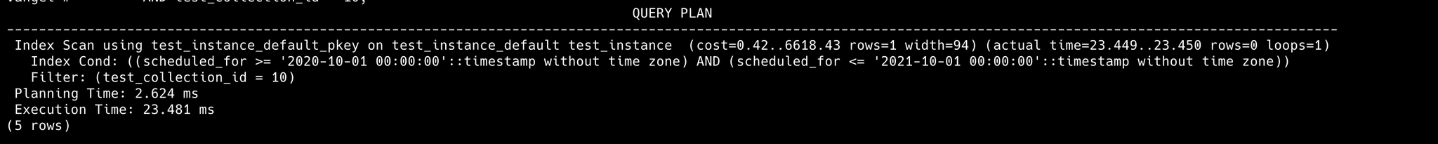 Во овој тест се мерат перформансите на табелата test_instance во која има 37.000.000 податоци. Во едниот тест кверито е пуштено на табела без партиција, а во вториот тест истото квери е пуштено на истите податоци само што табелата е партиционирана.