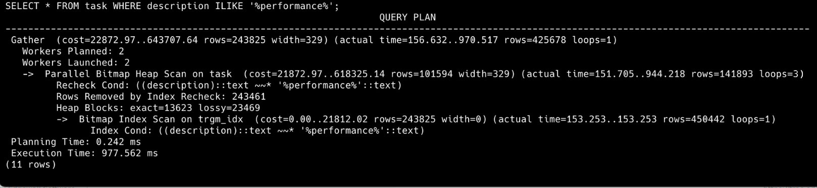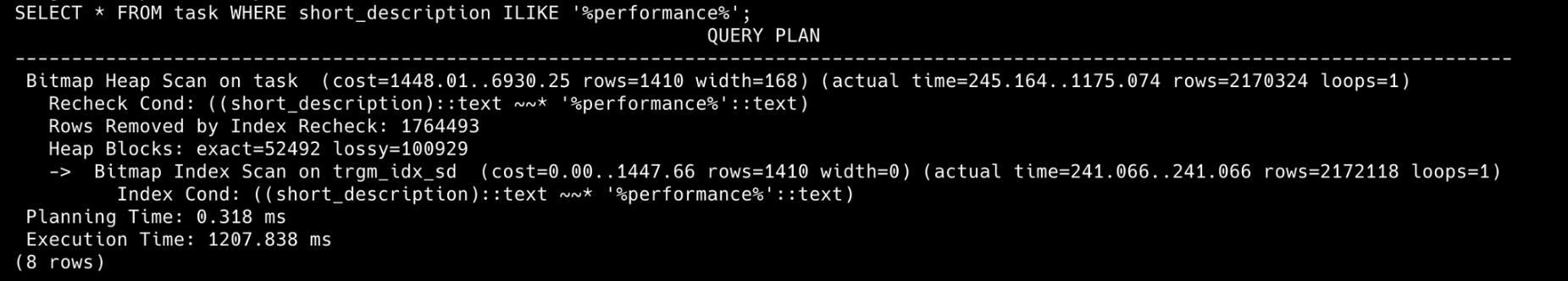 Овој тест е извршен на табелата task во која има 14.100.000 тест податоци. Тестовите се изврпени еднаш со shared_buffers: 128MB, а другиот пат со shared_buffers: 2GB.