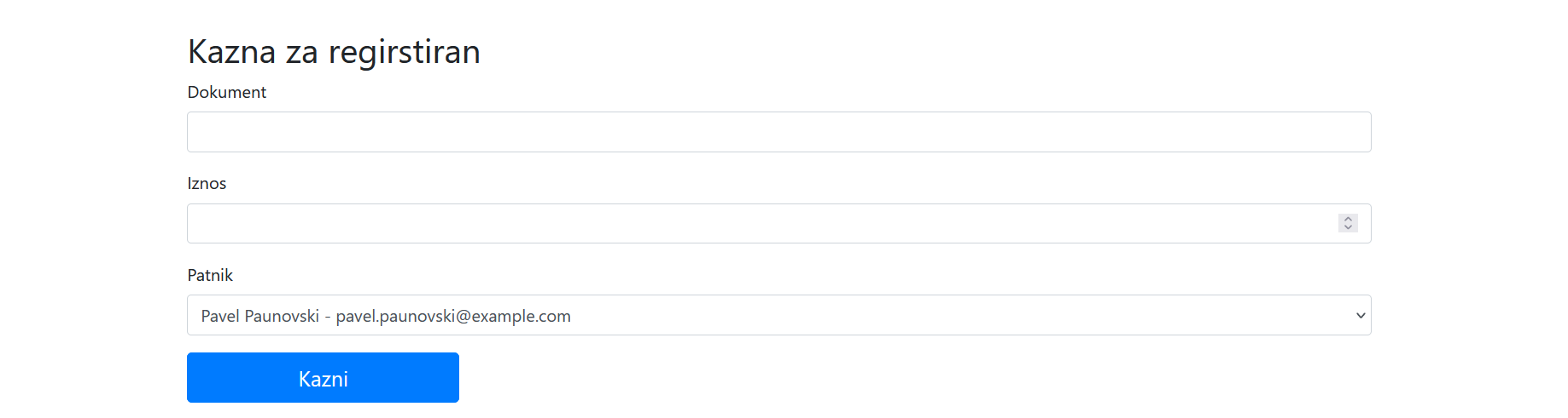 3. Приказ на менито за казна на нерегистриран корисник
