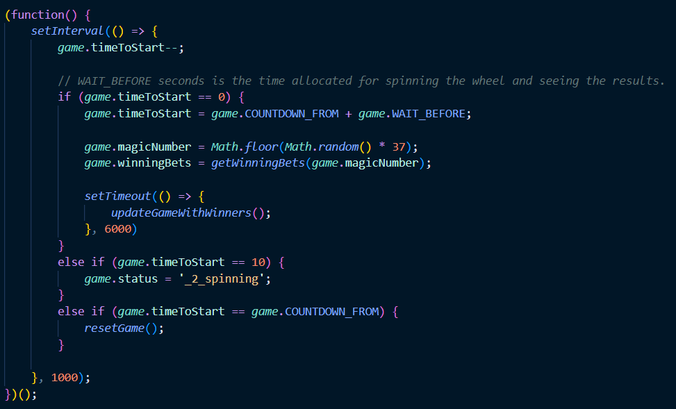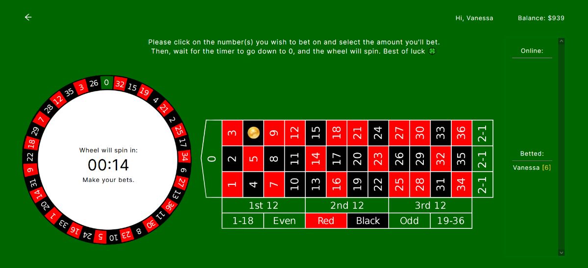 За ажурирање на оно што корисникот го гледа на клиентската страна, тој на интервали од 1 секунда испраќа GET request до /api/roulette, при што му се враќаат обработените податоци што треба да се прикажат на неговиот екран. Ако тој континуирано не добива одговори, му се прикажува информација дека серверот е недостапен.