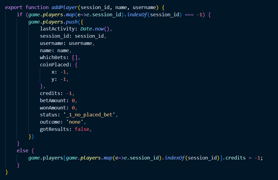 Вака на серверот се прогласуваат победниците. За секој што освоил кредити, се прави request до /api/postgre, каде им се доделуваат освоените кредити.