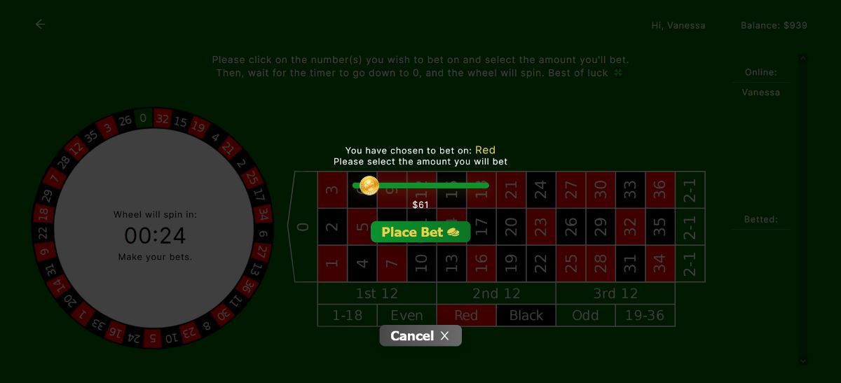 Еве го екранот што корисникот го гледа за да избере колкав залог да постави и на што да се обложи.