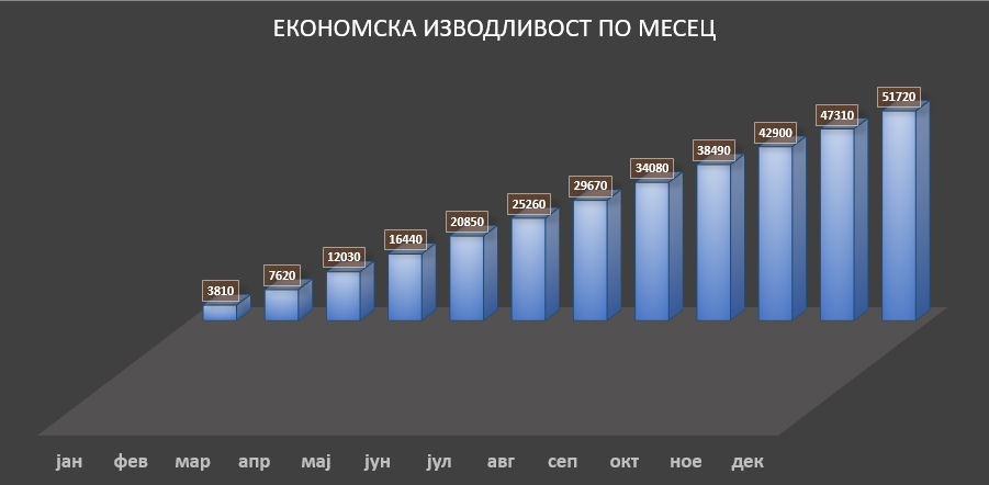 | вкупно на крај на месец | 3810 | 7620 | 12030 | 16440 | 20850 | 25260 | 29670 | 34080 | 38490 | 42900 | 47310 | 51720 |