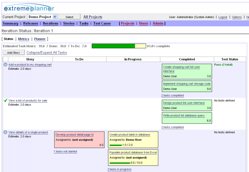 ExtremePlanner е едно од решенијата за управување на агилни бизнис процеси кои се ракува и користи само на интернет пребарувач. Ова решение е специфично изградено за да поддржува агилни методи вклучувајќи ги Scrum и XP