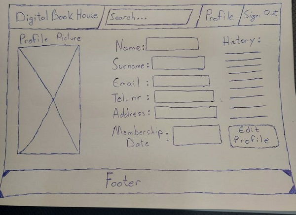 - Во десниот дел од скицата е прикажан историјатот на изнајмени книги од страна на најавениот член и копче за промена на лични податоци на најавениот член “Edit Profile”.