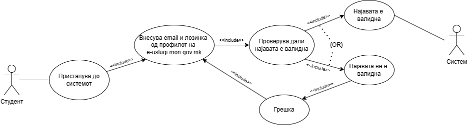 - Внесува корисничко име и лозинка од профилот на e-uslugi.mon.gov.mk како и свои лични податоци