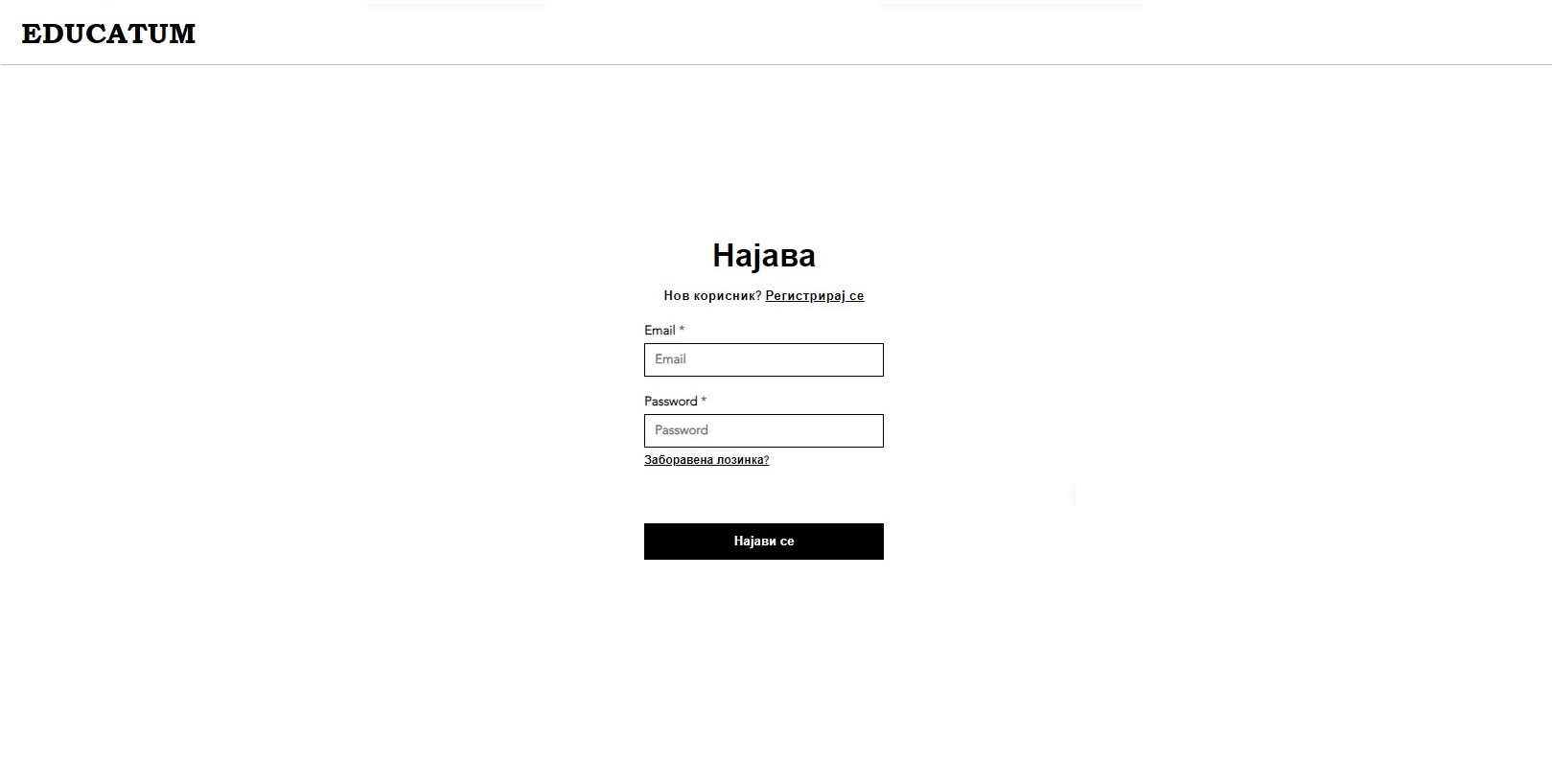 Се прикажува форма за најава каде треба да се внеси e-mail и password.