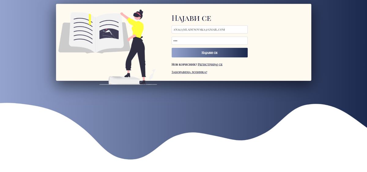 -- Доколку корисникот ги внесе неговите емаил и лозинка во следната форма и проба да се најави.