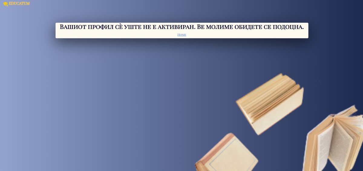 -- Истиот ќе добие порака дека сеуште не е активиран како наставник, односно дека неговиот профил не е активен, а кога ќе биде му следува известување на неговиот емаил.