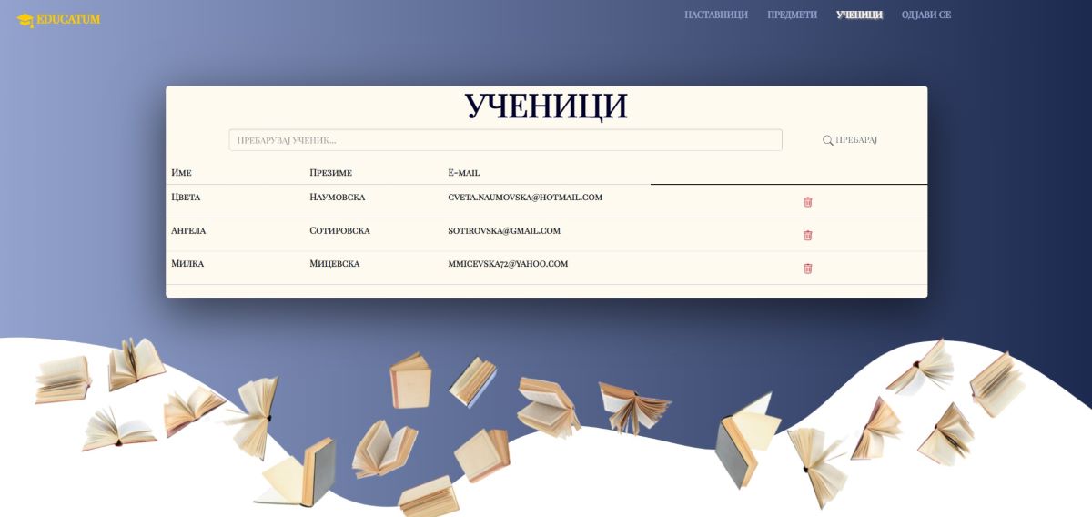 -- Истата можност ја има доколку од мени избере и преглед на учениците од каде што може да пристапува до учениците, да пребарува меѓу учениците како и да брише ученик.
