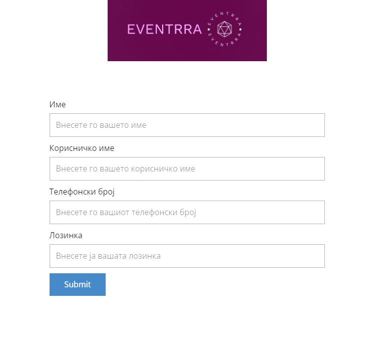 Да кажеме дека корисникот во претходниот чекор избрал опција да се регистрира. Се прикажува форма за регистрација.