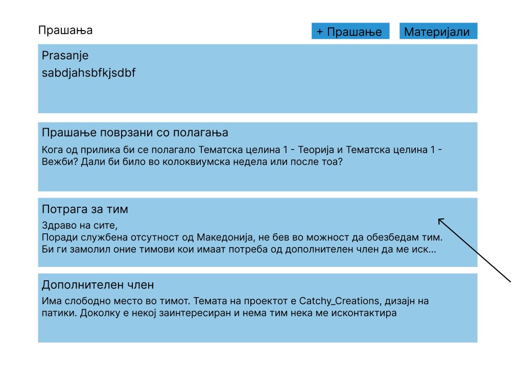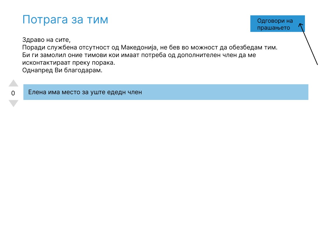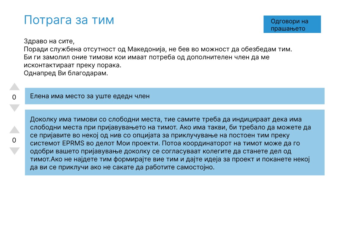 При клик на одредено прашање, корисникот е навигиран кон посебна страна која се состои од сите детали за прашањето, како и веќе поставените одговори (доколку има такви)