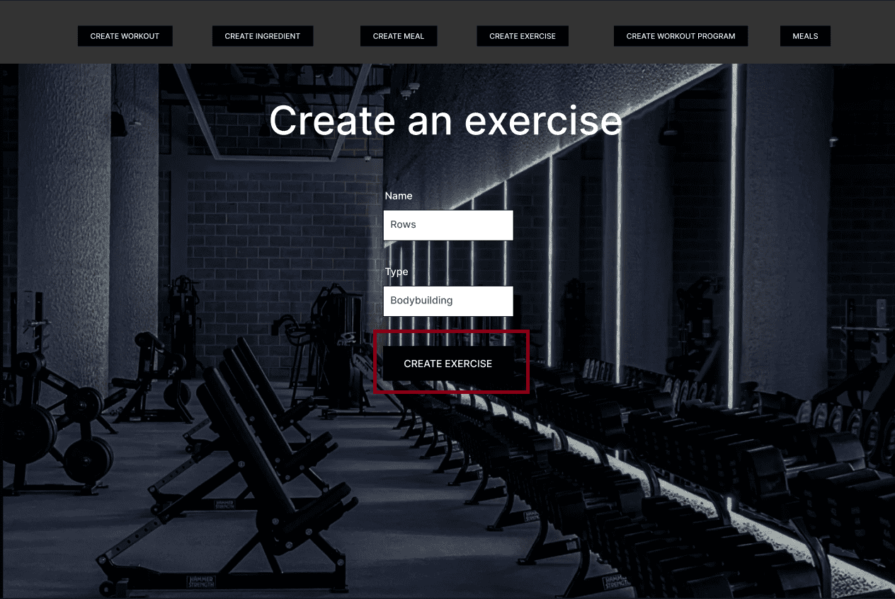 Системот прикажува форма за информации потребни за додавање на вежбата (име и тип на вежба)