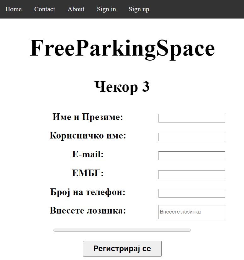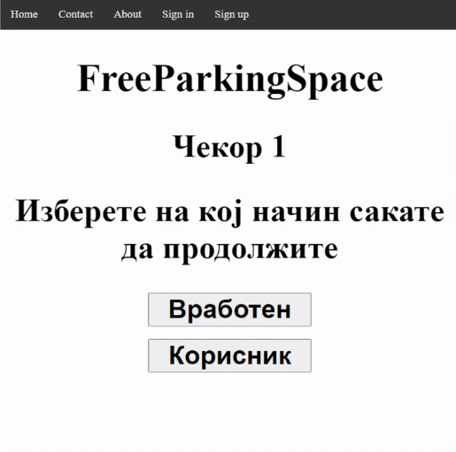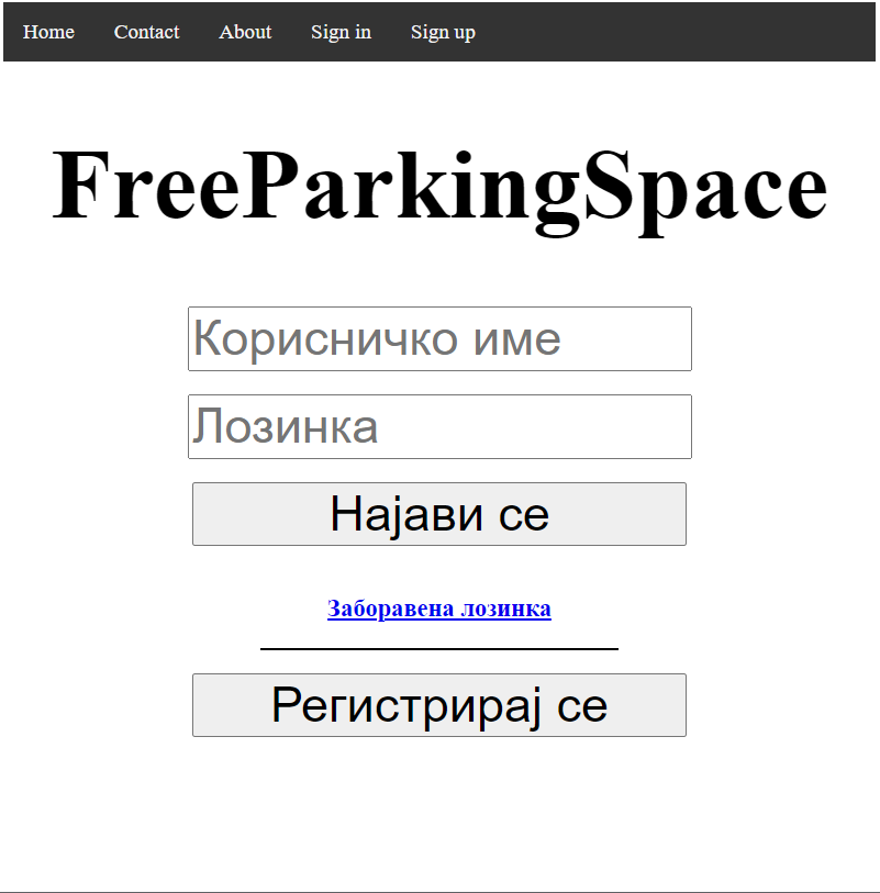 На корисникот на апликацијата му се прикажува почетната страна на веб-сајтот. Во зависност од опцијата (регистрација или најава) која ќе ја избере, лицето соодветно се регистрира или се најавува.