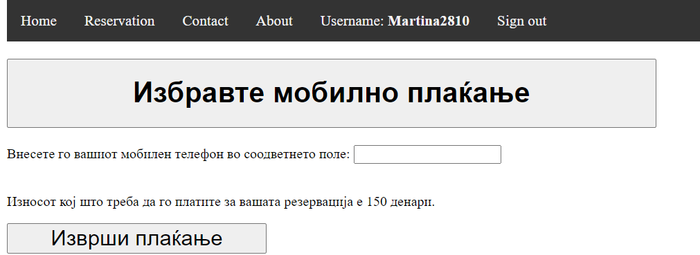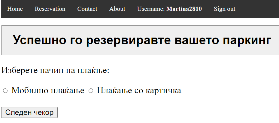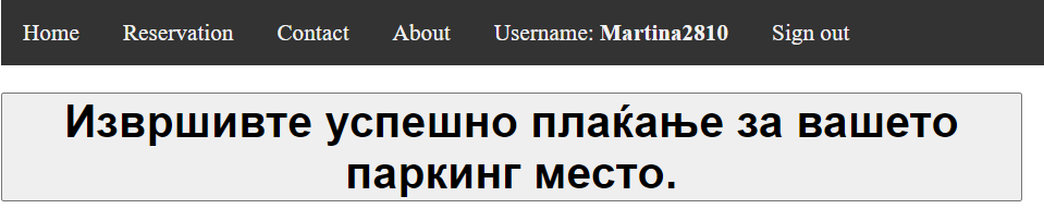 Откако ќе го одреди периодот за кој што го резервирал паркинг местото, соодветно треба да ја плати дадената сума од страна на апликацијата.